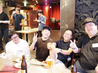 新涼の中、フレッシュなメンバー4人とともに開催した懇親会。